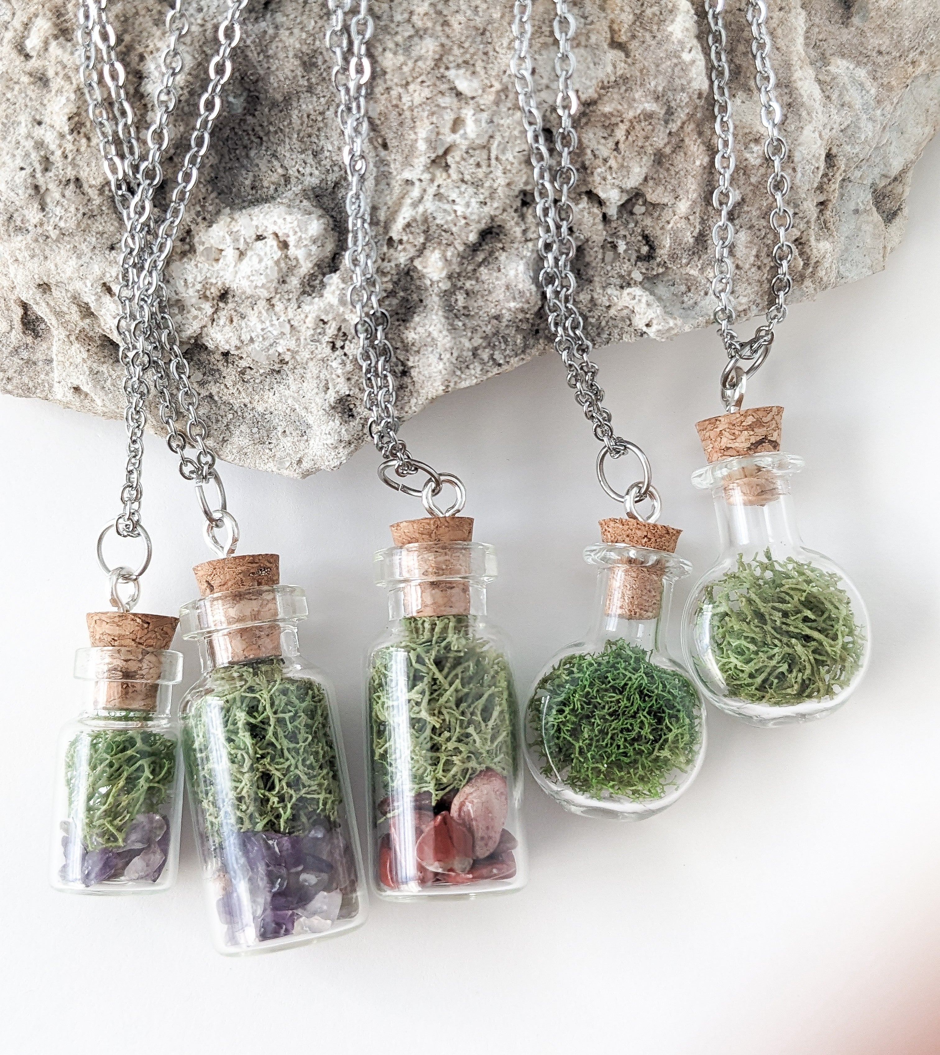 Extra Tiny Amethyst & Moss Terrarium Bottle Necklace